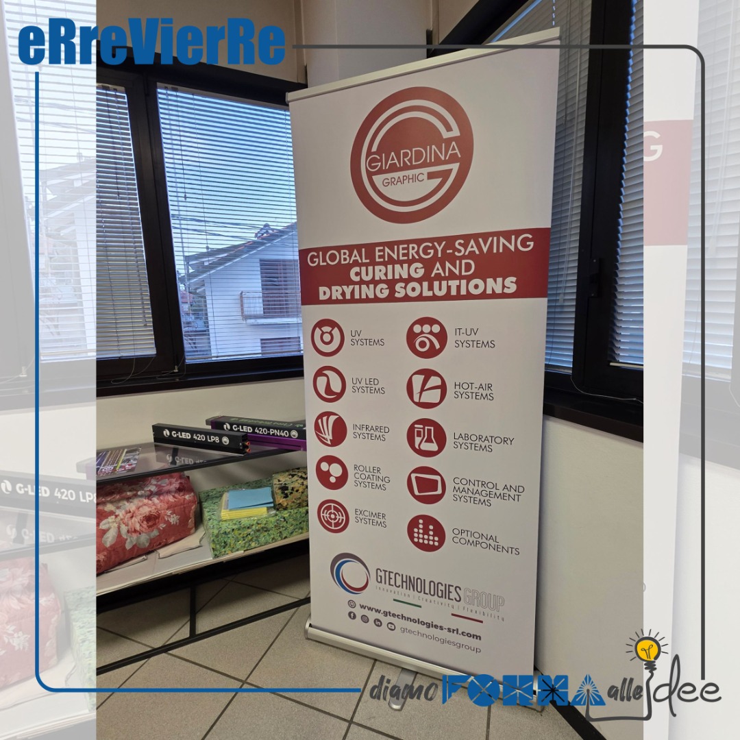 I Roll Up Errevierre sono completamente personalizzabili sia nel design grafico che nelle dimensioni. Studiamo insieme un progetto grafico in linea con la tua immagine coordinata, con colori, testi e immagini pensati per catturare l’attenzione e trasmettere il tuo messaggio con chiarezza e impatto visivo. Sono disponibili in versione monofacciale o bifacciale, con diverse opzioni di qualità per struttura e telo, dalla soluzione più economica a quella professionale.