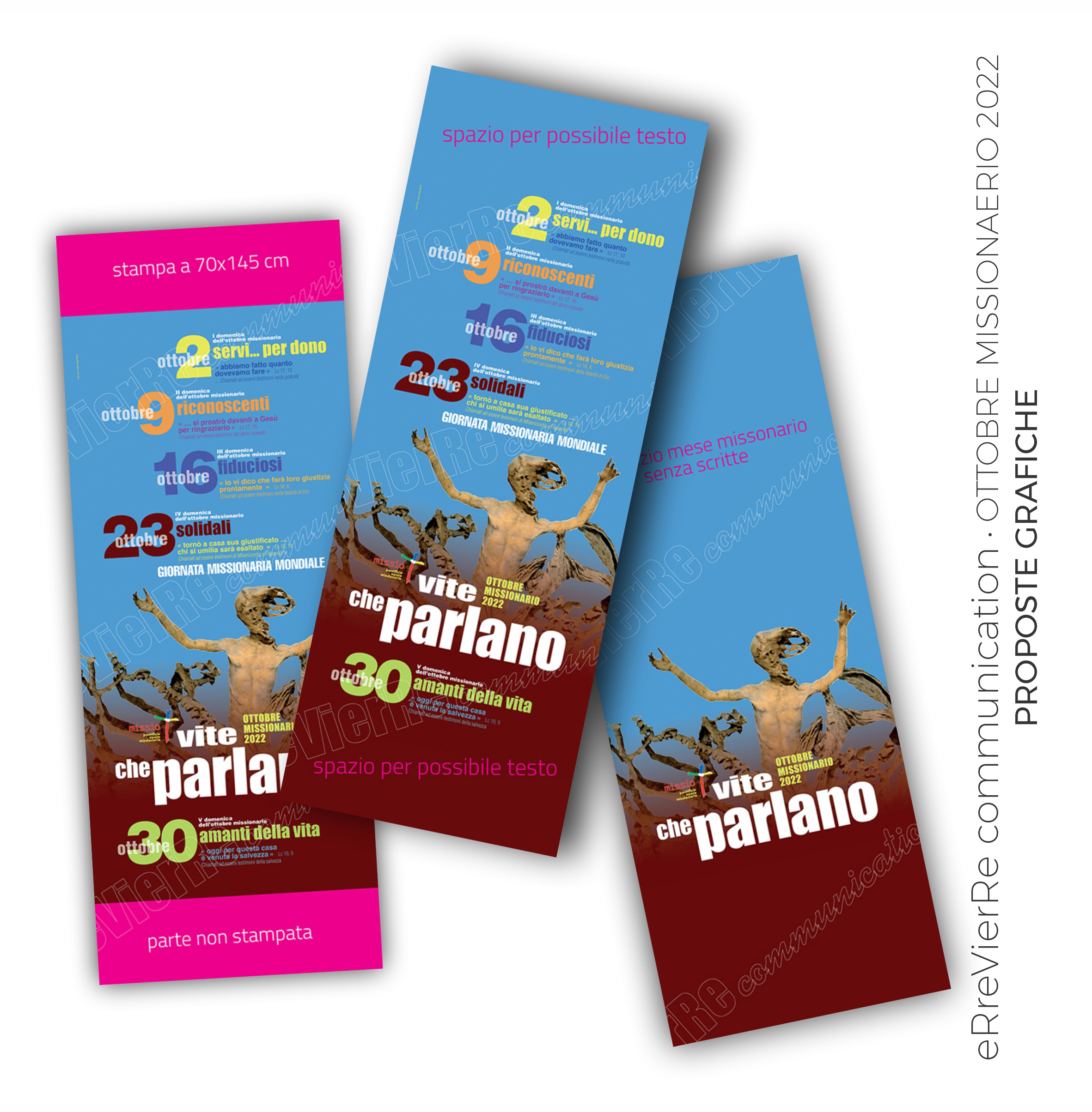 Il progetto ha previsto la costruzione in un poster con la base neutra sul quale ogni domenica applicare le fasce con il titolo e il tema liturgico della domenica.