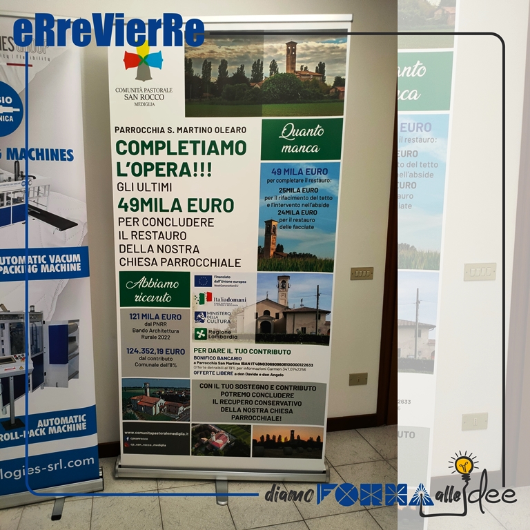 I Roll Up Errevierre sono completamente personalizzabili sia nel design grafico che nelle dimensioni. Studiamo insieme un progetto grafico in linea con la tua immagine coordinata, con colori, testi e immagini pensati per catturare l’attenzione e trasmettere il tuo messaggio con chiarezza e impatto visivo. Sono disponibili in versione monofacciale o bifacciale, con diverse opzioni di qualità per struttura e telo, dalla soluzione più economica a quella professionale.